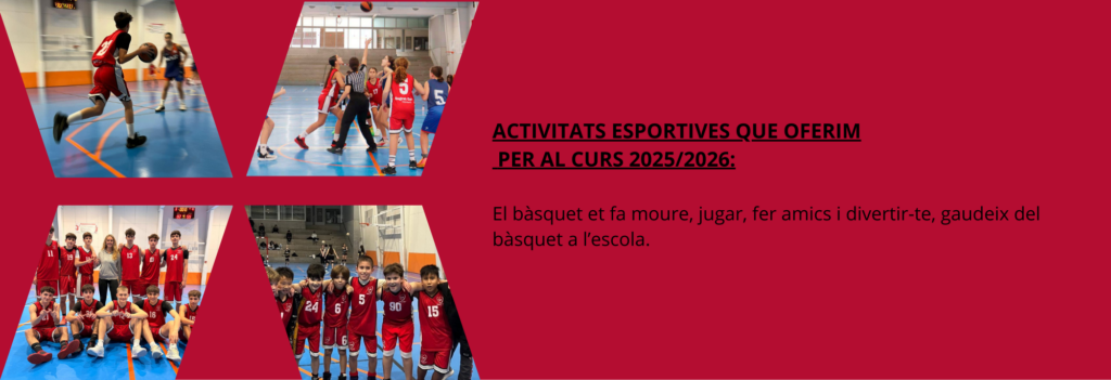 Bàsquet Consulteu l’oferta d’activitats esportives i horaris per als diferents cursos: cliqueu aquí. Condicions d’inscripció i matrícula d’activitats esportives: cliqueu aquí. Inscripcions: cliqueu aquí.