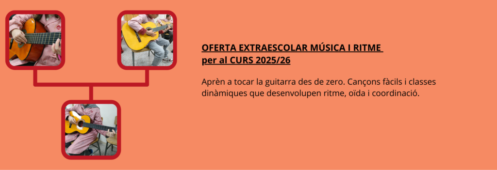 Guitarra Consulteu els horaris, preus, com fer la matrícula i condicions de l’extraescolar de Música i Ritme.